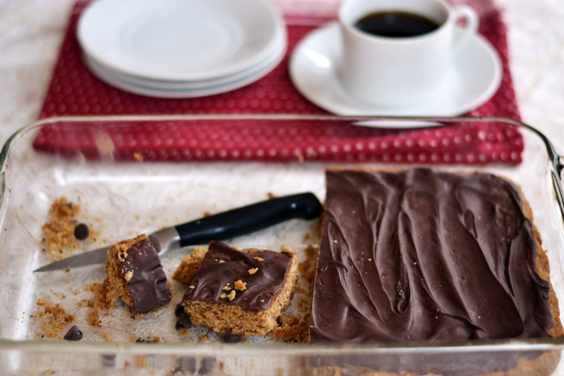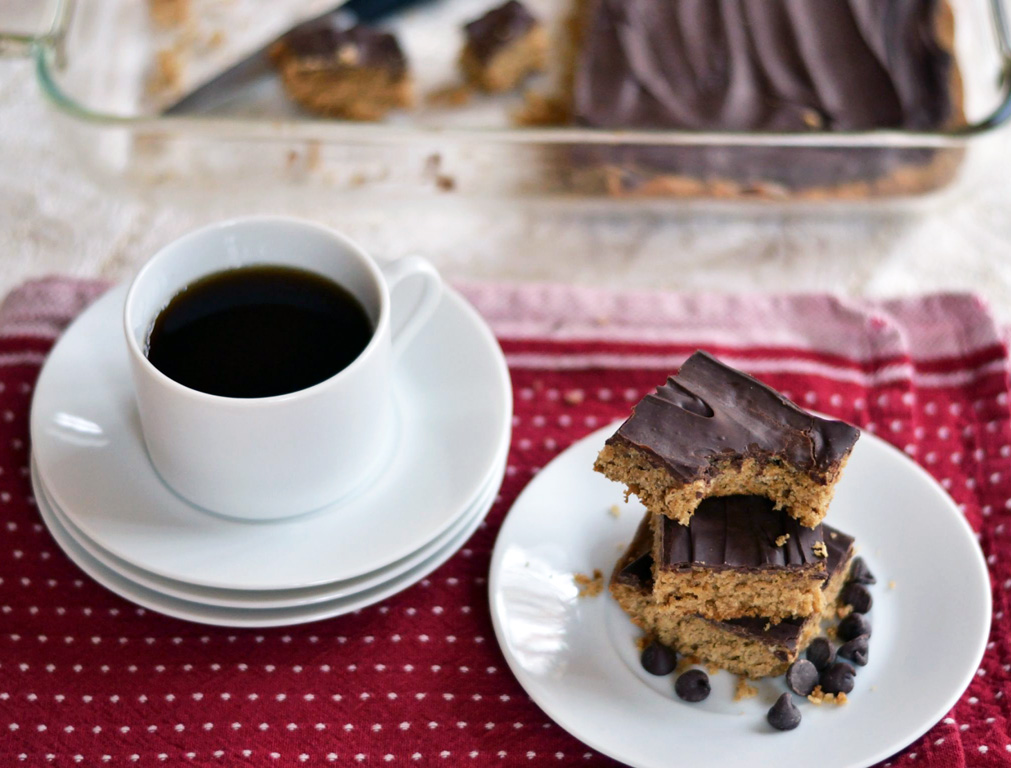 Full of oats. And peanut butter. And topped off with a hard layer of just enough chocolate.